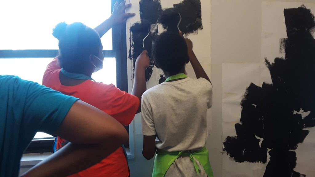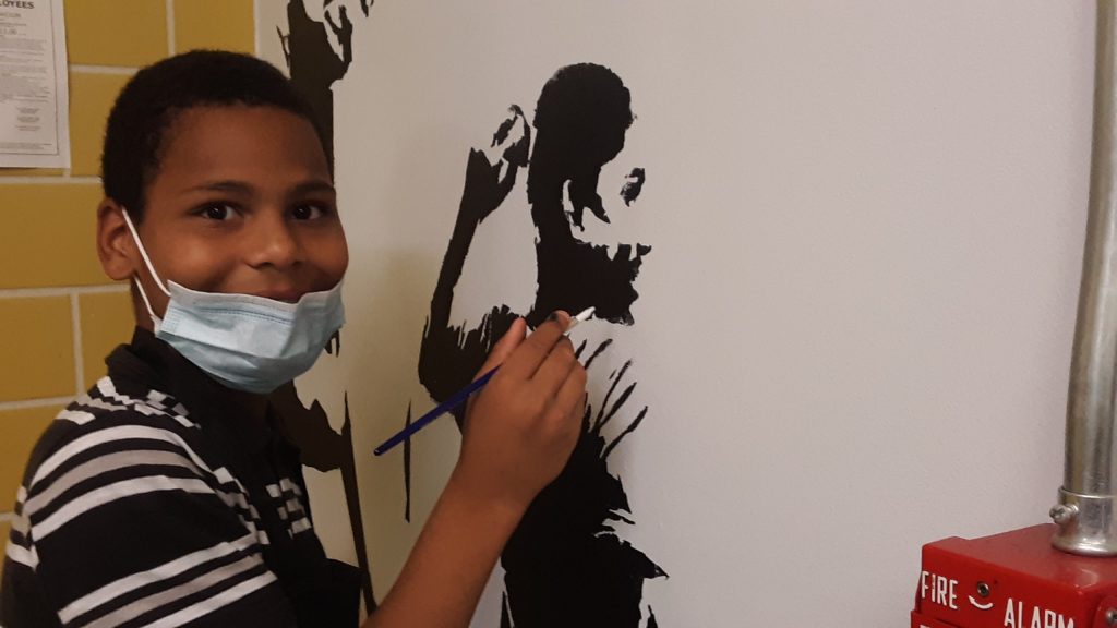 Artists on the project include lead artist Aaron Cooper, teaching artist from Pratt, Drue Schwartz, and contributing artists Jefferson Cruz, Jayden Mitchell, Michael Mitchell, Winnie Pierre, and Amy Lopez. We are thrilled to use the fundamental art skills we are teaching our youth to decorate new and inviting spaces for our incoming preschoolers!