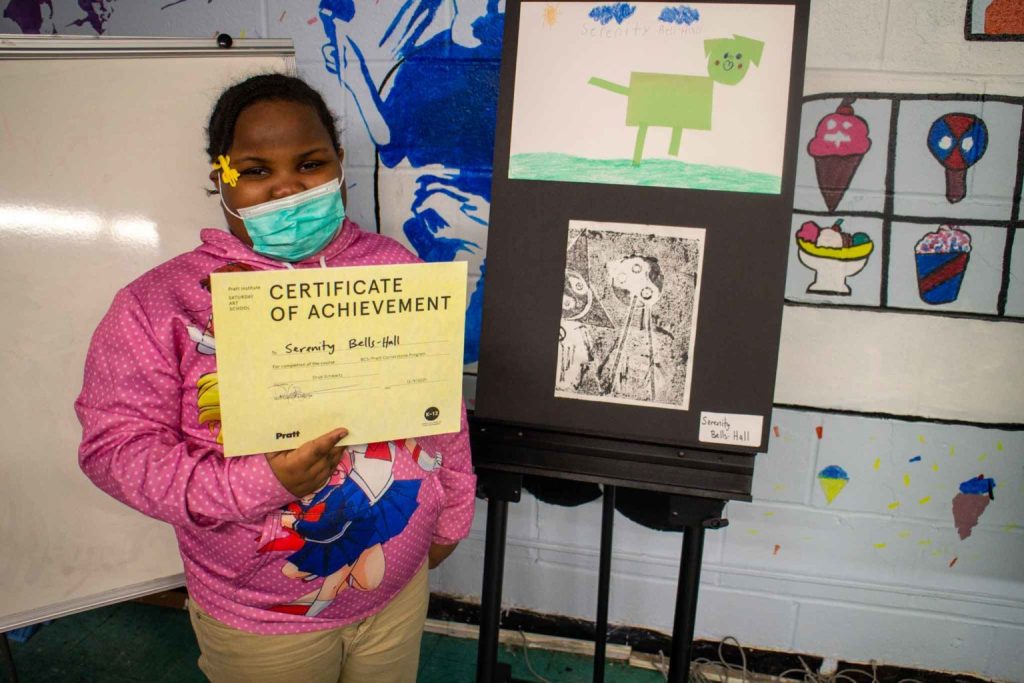 PERETZ FOUNDATION and the Pratt Institute’s Center for Art, Design, and Community Engagement collaborated in a 10-week program of after school art education for youth at Seth Low and Farragut Cornerstones. Throughout the program, elementary, middle, and high school students learned skills in printmaking, drawing, painting, and digital imaging. The teaching artist for the courses, Drue Schwartz, taught students foundational art theory like elements of art and principles of design. Students looked at the work of pioneering Black, Hispanic, and LGBTQ artists to inform their work. Art pieces reflected an idea or concept of importance to PERETZ FOUNDATION students and displayed a unique worldview.